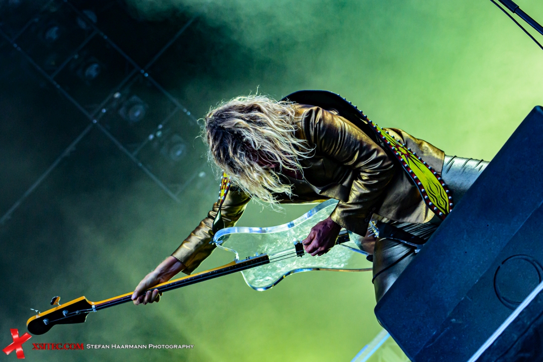 Dänischer High-Energy-Rock, so trocken wie der Humor zwischen den Songs. Auf der LOUDER setzt „Sleeping My Day Away“ den großen Mitsing-Haken; Cowpunk-Röstaroma inklusive. Allein Bassmann Stig Pedersen ist das gesamte Eintrittgeld wert: seine Bässe, die nicht vier, sondern nur noch zwei Saiten haben, sind allesamt Unikate. Die Sonderanfertigungen dienen hier nicht nur als Musikinstrument, sondern vielmehr als Requisite, mit der die Show der Dänen um etliche Farbtupfer bereichert wird. So ganz nebenbei liefern die vier Jungs eine Show ab, die keinerlei Wünsche offenlässt. Ein Mega Happening.