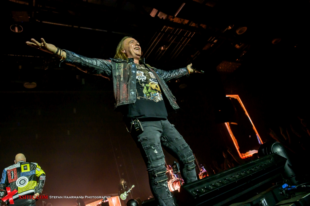 Die Setlist ist eine meisterhaft kuratierte Tour de Force. Sie ist eine Liebeserklärung an die gesamte Bandgeschichte, die nahtlos die Epochen verbindet. Man spürt den Respekt vor dem Erbe, aber auch die Freude am gegenwärtigen Moment. Höhepunkte gibt es en masse. „Twilight Of The Gods“ wirkt live wie eine monumentale Symphonie, bei der alle drei Sänger glänzen. „I Want Out“ wird begleitet durch einen mächtigen Kanonenschlag dund Pyro-Effekte, die den Saal erhellen und die gesamte Menge in einen einzigen, hüpfenden Metal-Organismus verwandelt, ist die Ekstase absolut. Dies ist mehr als ein Lied; es ist eine Hymne, ein Lebensgefühl.
