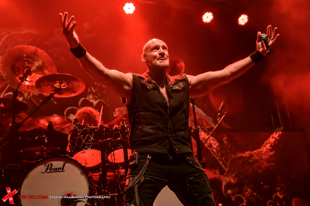 Beim Namen Peter Baltes klingelt es zumindest beim eingefleischten ACCEPT-Fan, denn der Hühne am Viersaiter war neben Udo Dirkschneider Gründungsmitglied der Kult-Metaller, verließ die Band aber 2018 und stieg nach dem Abgang von Tilen Hudrap Anno 2022 bei U.D.O. ein. U.D.O. machen genau dort weiter, wo PRIMAL FEAR aufgehört haben: krachende Riffs, knarzig-rauchige Stimme, dazu geniale Soli der beiden Stromgitarren, die für mächtig Stimmung im Publikum sorgen, das Ganze getragen vom perfekten Zusammenspiel der Rhythmus-Fraktion um Sven Dirkschneider und Peter Baltes. Das kann man nicht viel besser machen, hinzu kommt ein bestens aufgelegter Udo Dirkschneider, der immer noch vielen Jungspunden zeigt, wo der Barthel den Most holt. Der Abend vergeht wie im Flug, Klassiker wie „Holy“ oder „They Want War“ schütteln die Turbinenhalle so richtig durch, bevor es dann im Zugabenteil ein Wiedersehen mit einem alten Mitstreiter gibt, der lange Jahre Teil des U.D.O.-Projekts gewesen ist.