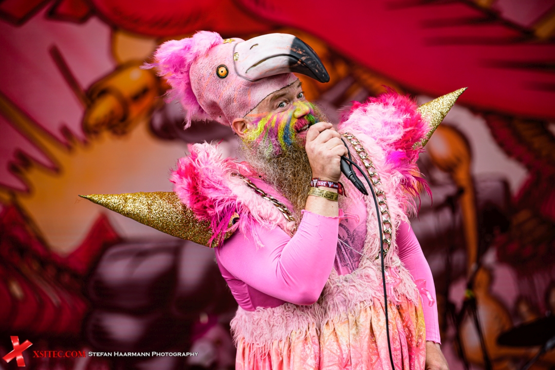 Als der Bauer das Feld geräumt hat, geht es mit norwegischer Anarcho-Polka in den finalen Tag des Festivals. Saxofon und Seemannsgarn: TROLLFEST rollen mit Balkan-Grooves, Blastbeats, Blödelei und musikalische Präzision das Feld von hinten auf und liefern auch musikalisch deutlich mehr als die Gummihuhn-Optik vermuten lässt.